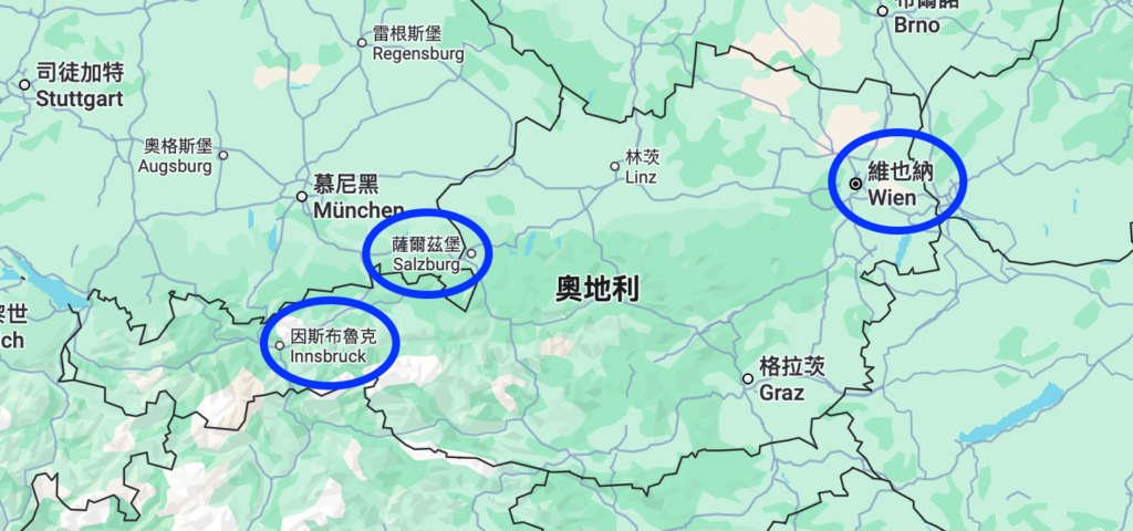 薩爾茲堡位於奧地利西北部,幾乎與德國邊境接壤,所以到德國的國王湖、慕尼黑其實都很近!奧地利是個東西向長長的國家,所以要注意其實像哈修塔特、因斯布魯克和這次介紹的薩爾茲堡,都離維也納有段距離。
