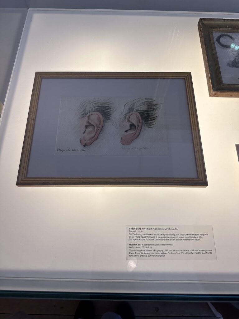→ 這張畫的是莫札特的耳朵,左邊是這位音樂才子的,右邊是我們凡夫俗子的哈哈;他的故居展出不少很細節(獵奇?)的展品,包括莫札特的頭髮!