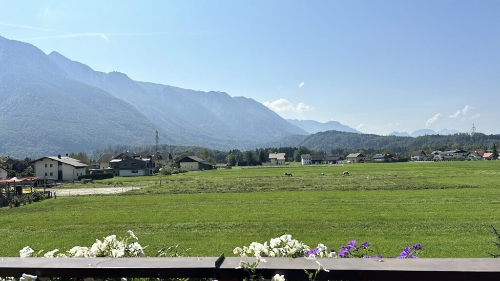 因為夏天是他們的旺季,所以其實城內的住宿都不便宜,這間是在Airbnb上預定的,一晚兩千多還有附廚房,雖然離市區大約要搭二十分鐘的公車到城外的住宅區,但也因此能有幸住在阿爾卑斯山的山腳下!在陽台吃著剛做好的義大利麵,窗外看著鄰人的牧馬,是絕美難忘的體驗!