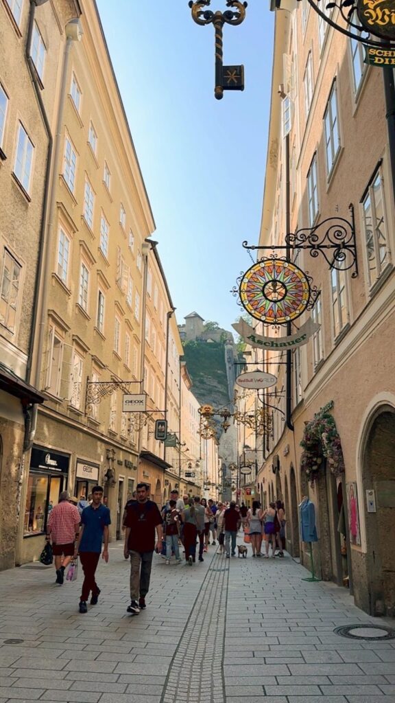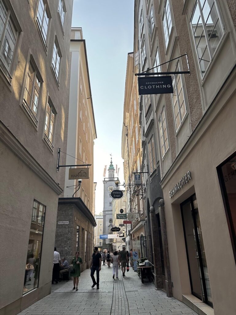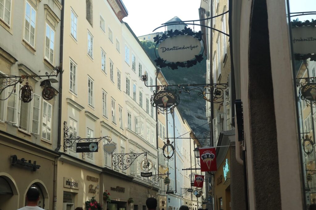 這是薩爾茲堡老城區最主要的觀光街道,各色商店林立,除了有來奧地利必逛的Manner威化餅、莫札特巧克力,甚至還有Redbull專賣店。