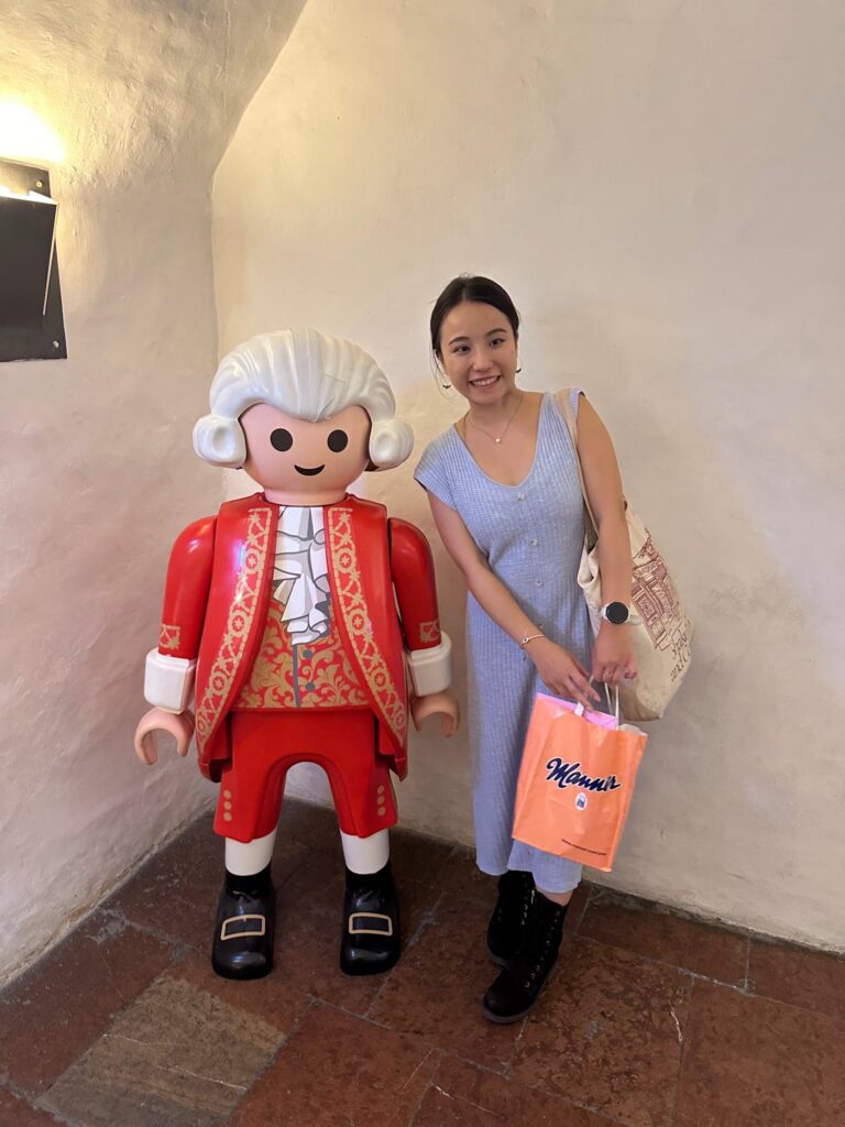 → 一進故居參觀就有巨大的莫札特樂高迎接XD我手上拿的粉嫩提袋就是鼎鼎大名的Manner 威化餅