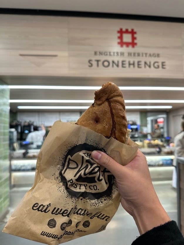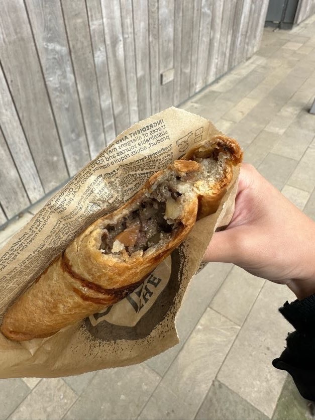 回程肚子實在太餓,點了一份 Beef Pasty,是來自英國西南部康沃爾郡(Cornwall)的傳統點心,外觀呈半月形(crescent-shaped)