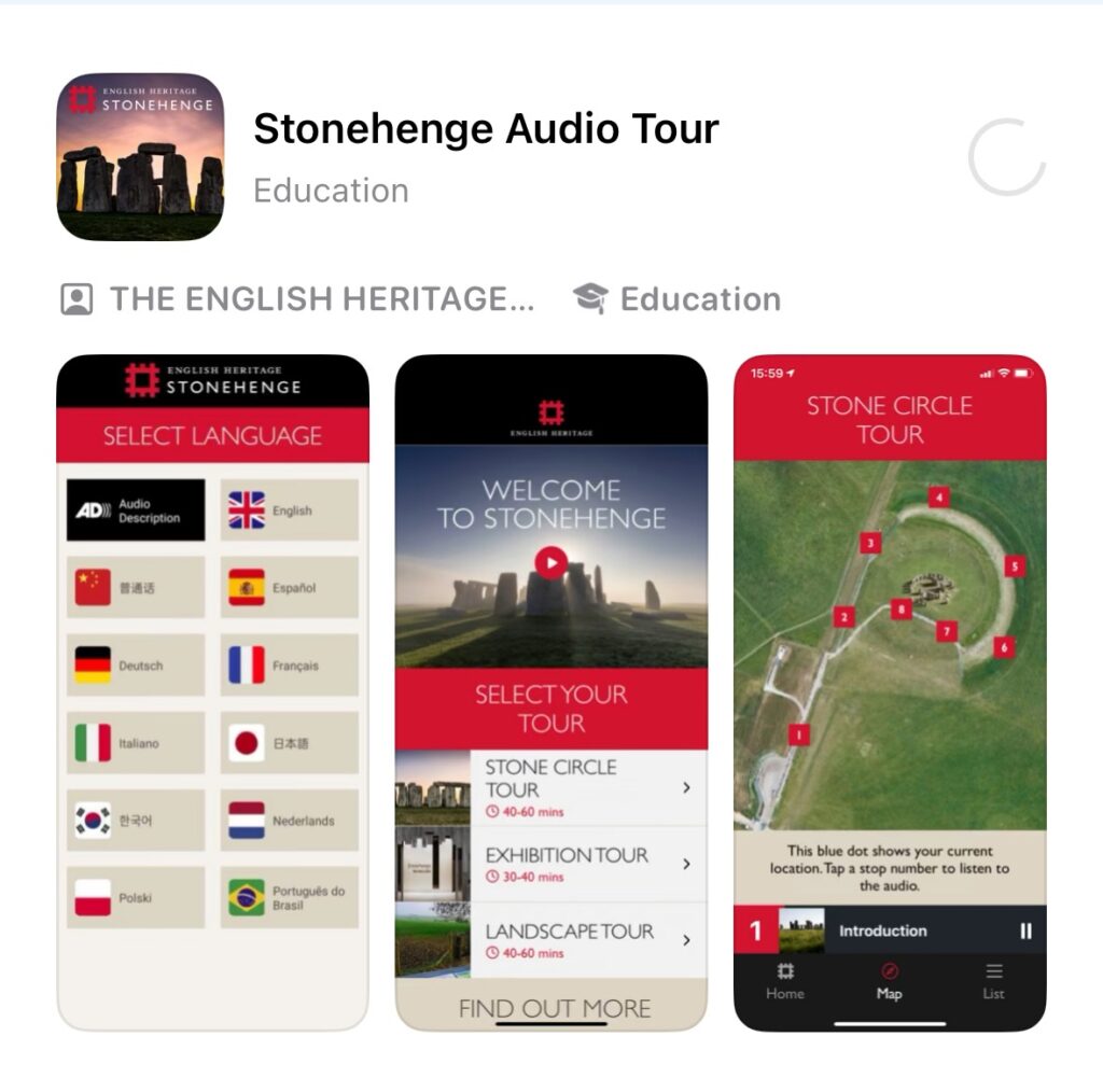 可到 App商店下載這個 Stonehenge Audio Tour,也有中文的解說,繞著石圈走搭配音檔約40-60分鐘