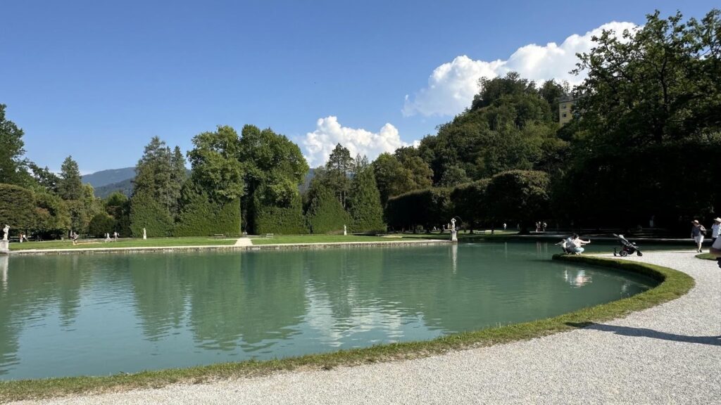 宮殿外圍的庭院很美,是開放給大眾的廣大綠地公園,其中最知名的地標是《真善美》涼亭 (The Sound of Music Gazebo),是在電影中傳唱《Sixteen Going on Seventeen》的著名玻璃涼亭(可惜我沒拍到照)