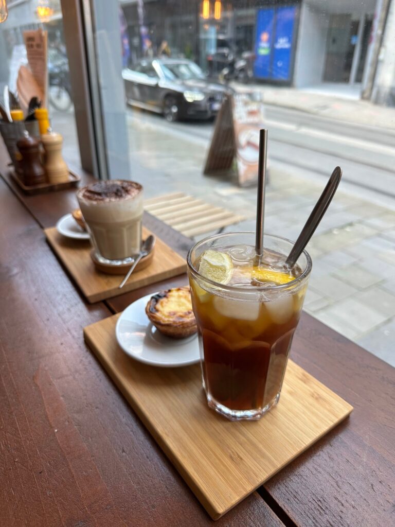 → 和Host 在根特的咖啡廳點杯咖啡坐坐,這裡有很多不錯的咖啡店!圖片裡的葡式蛋塔也很美味。