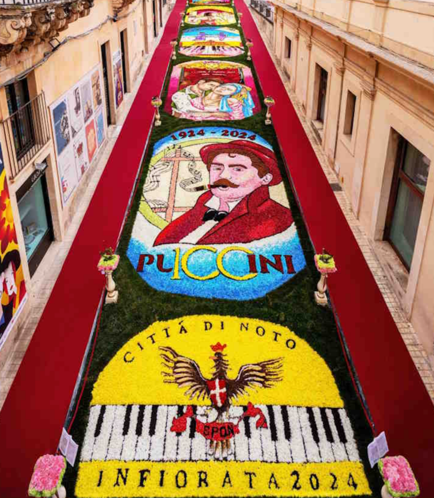每年五月,Noto的 Via Nicolaci 街道被幾百萬片花瓣覆蓋,鋪成巨大的藝術畫作,是 Noto 一年中最美但也最擁擠的時刻。